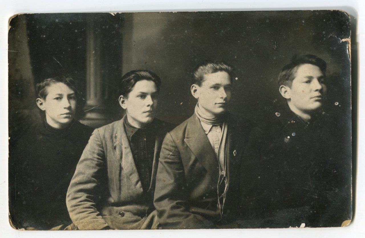 Справа налево: Федор Иванович, Василий Андрианович, Виталий Андрианович, Лев Иванович Ермоловы, 1932Фото: из архива Фёдора Ермолова «При советской власти дядья организовали артель и отдали в артель мельницу. Это очень не понравилось кулакам. <…> Они ненавидели всех Ермоловых. Дядя Лаврентий был красивый, веселый. <…> Однажды он шел с гулянки по улице Гуляевке, играл на гармошке. А <…> напоили одного мужчину <…> Алексея (Симунек, у него кличка была) наговорили ему такое чтобы он приревновал д. Лаврентия к своей жене и дали ему в руки дубину. Он набросился на дядю Лаврентия, дядя от него побежал, видит, что тот с дубиной. И вот не добежал он до дома метров 200. Алексей ударил его дубиной по голове, раз, другой… Убил он дядю Лаврентия. Судили <…> Алексея. Сидел он в тюрьме 5 лет».