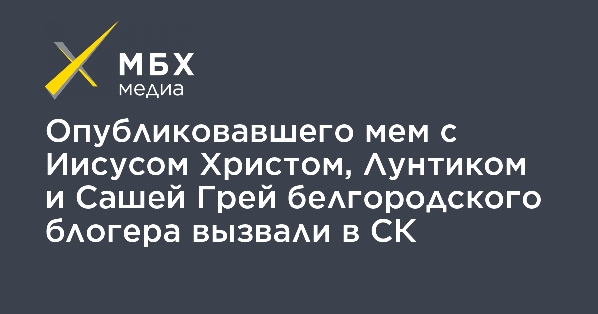 Белгородского блогера Никиту Горчакова вызвали на допрос в Следственный комитет по заявлению об оскорблении чувств верующих через год после того, как он опубликовал мем с изображением Иисуса Христа, Лунтика и порноактрисы Саши Грей в образе Девы Марии. Об этом «МБХ медиа» рассказал сам Горчаков.
