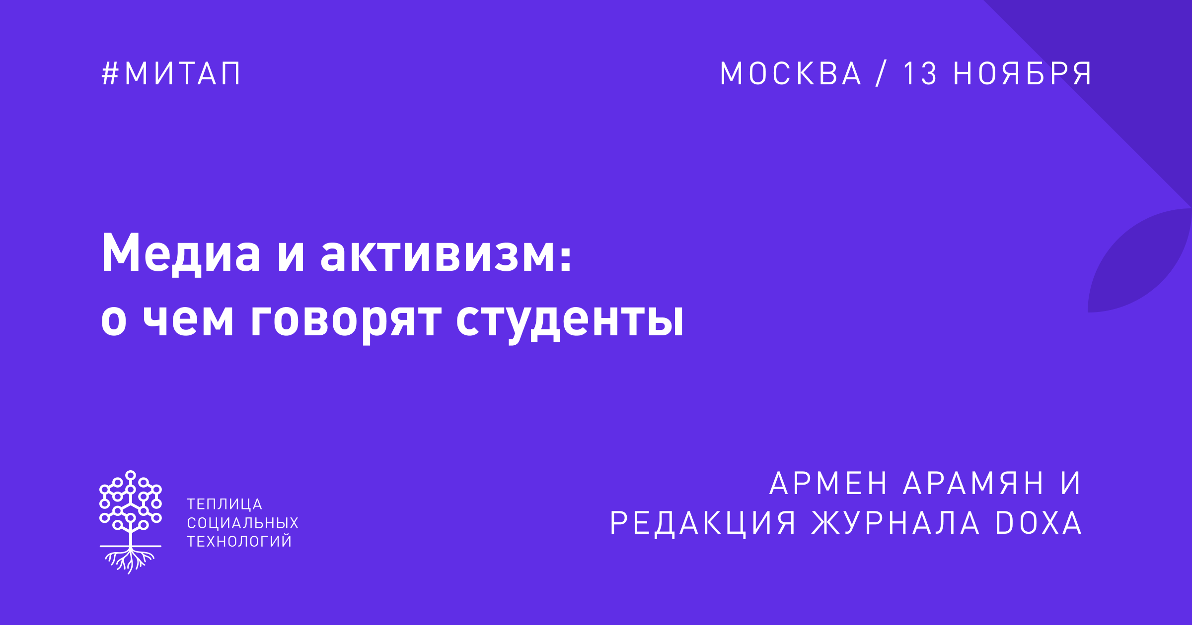 Митап «Медиа и активизм: о чем говорят студенты» состоится 13 ноября 2019 года в 19:30.