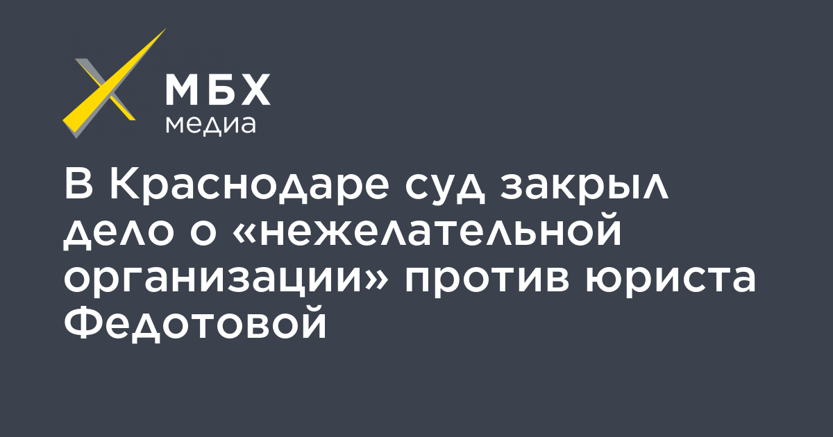 В Краснодаре суд закрыл административное дело против юриста Юлии Федотовой по ст. 20.33 КоАП — осуществление деятельности «нежелательной организации», об этом «МБХ медиа» сообщила сама Федотова.