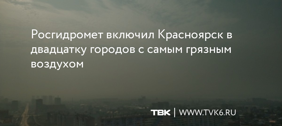 По данным Росгидромета за 2018 г., Красноярск вошел в двадцатку городов России с самым грязным воздухом. Об этом говорится в ежегоднике ведомства, подготовленном ведомством совместно с ФГБУ «Главная геофизическая обсерватория им. А. И. Воейкова».