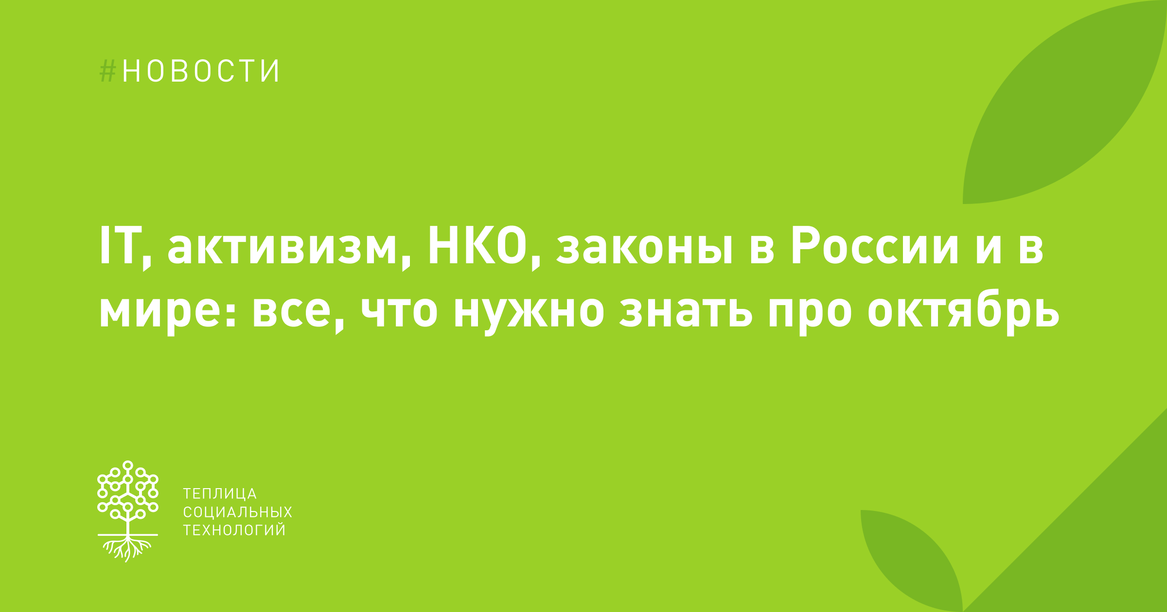 Запущены были в октябре не только общественные кампании, но и проекты, которые помогут НКО в работе. В бета-режиме теперь доступен для пользователей онлайн-агрегатор грантов и конкурсов «Капитан Грантов». Это единая информационная система с фильтрами поиска по географии, категории заявителя и направлению деятельности. Инфраструктурная платформа для развития НКО PHILIN анонсировала запуск в России навигатора по оценке социального воздействия PHINEO. С помощью инструмента можно будет самостоятельно мониторить социальное воздействие. Благотворительное собрание «Все вместе» представило обновленный Рискометр – онлайн-сервис для самоаудита некоммерческих организаций.