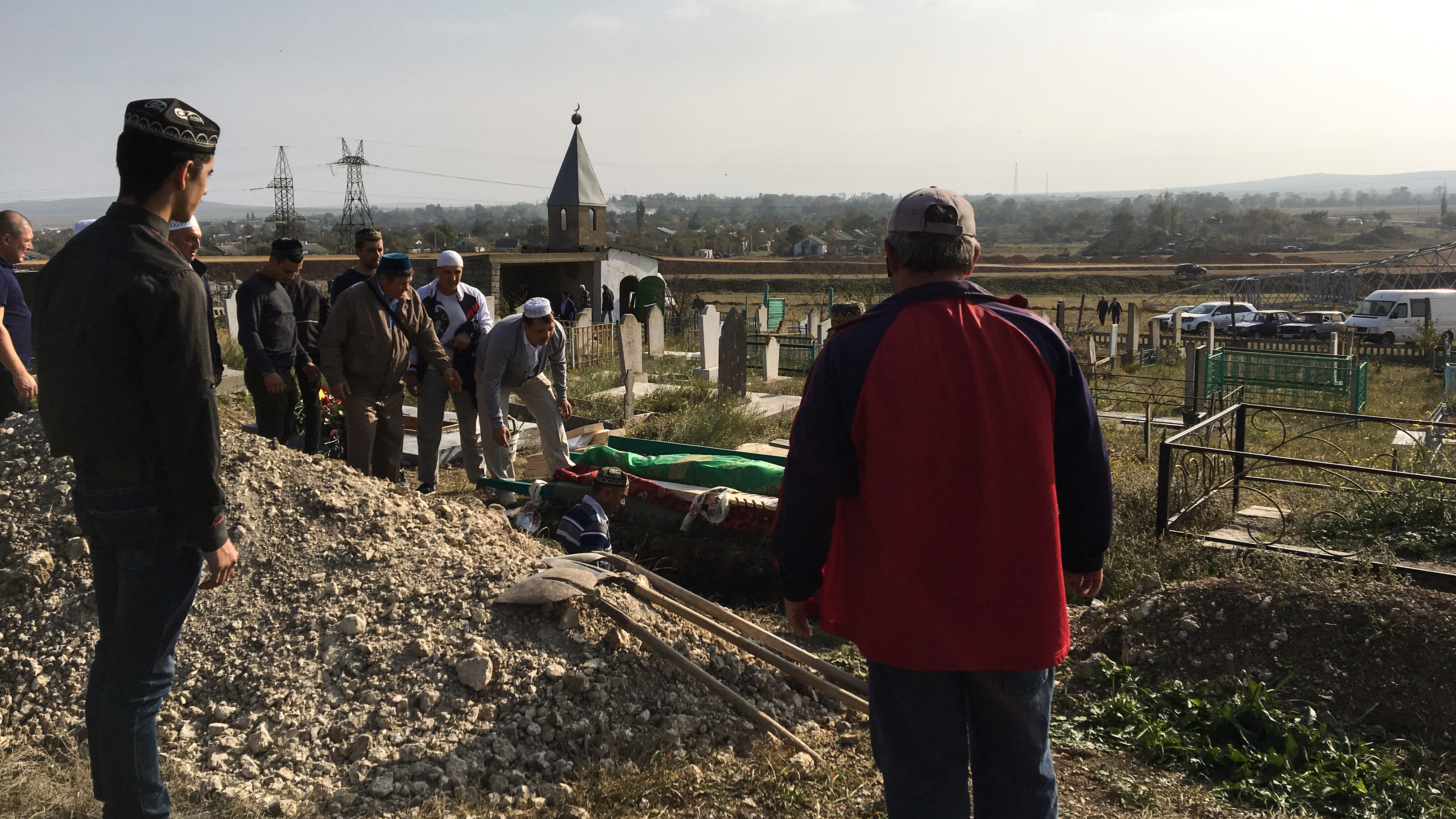 После разговора с имамом жители вернулись на кладбище и закопали свежевырытую могилу, приготовленную для Али Ганина. Его родные в ответ вызвали полицию, сообщило издание.