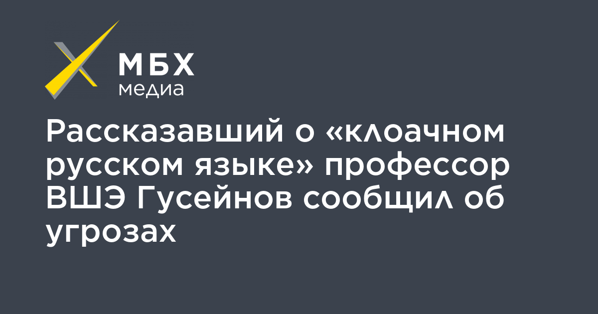 Профессор Высшей школы экономики (ВШЭ) Гасан Гусейнов, который заявил о «клоачном русском языке» в современных московских СМИ, в разговоре с «МБХ медиа» сообщил об угрозах в свой адрес.