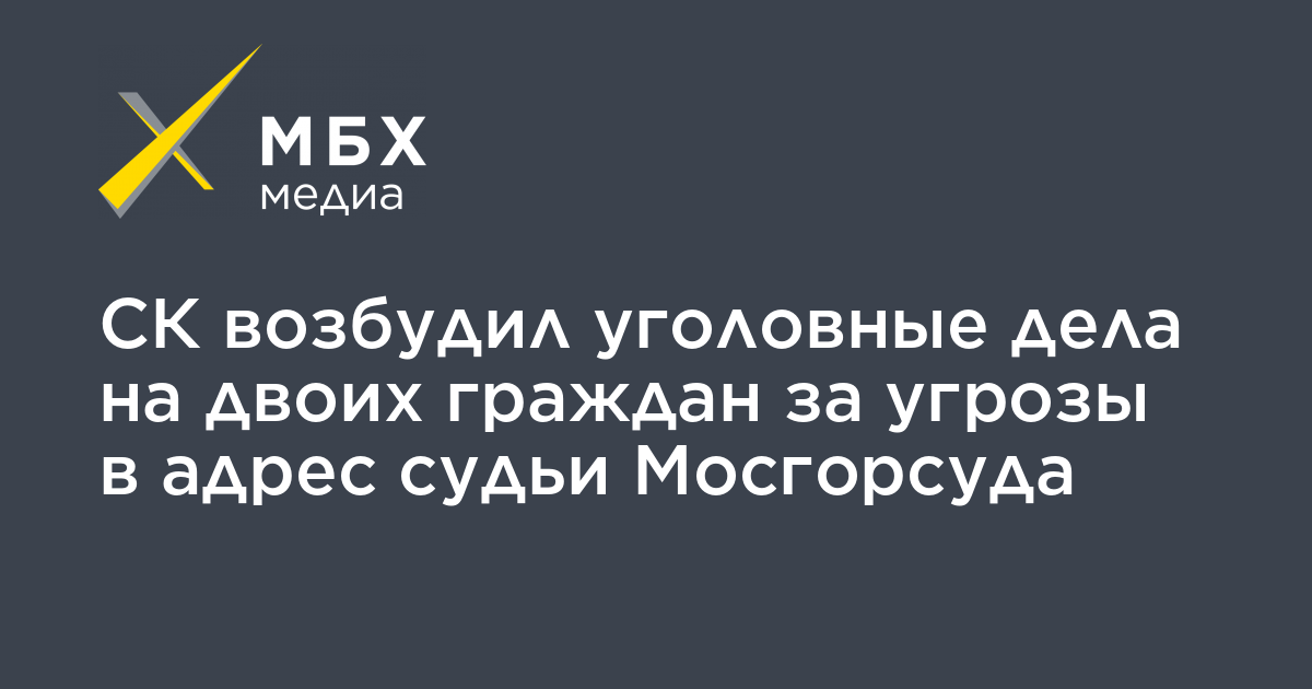 Следственный комитет возбудил уголовные дела на двоих граждан за угрозы в адрес судьи Мосгорсуда. Об этом сообщается на сайте силового ведомства.