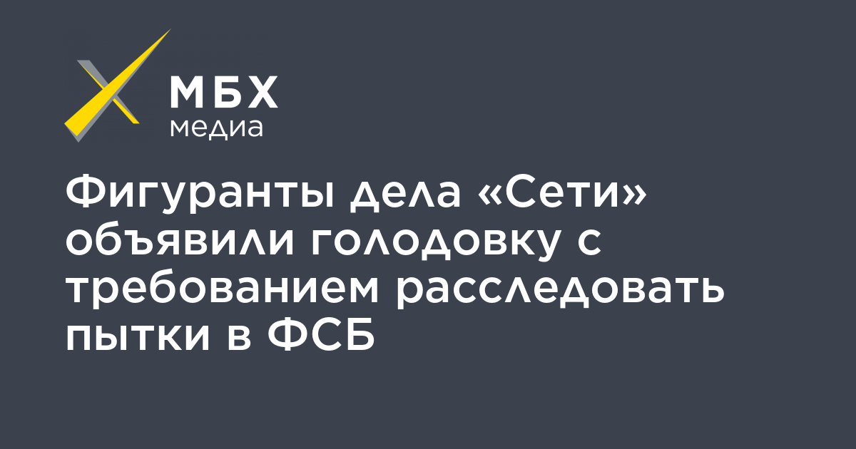 Обвиняемые по делу «Сети» Арман Сагынбаев, Дмитрий Пчелинцев и Максим Иванкин объявили голодовку и потребовали расследования их жалоб на пытки в ФСБ, сообщает «7×7».