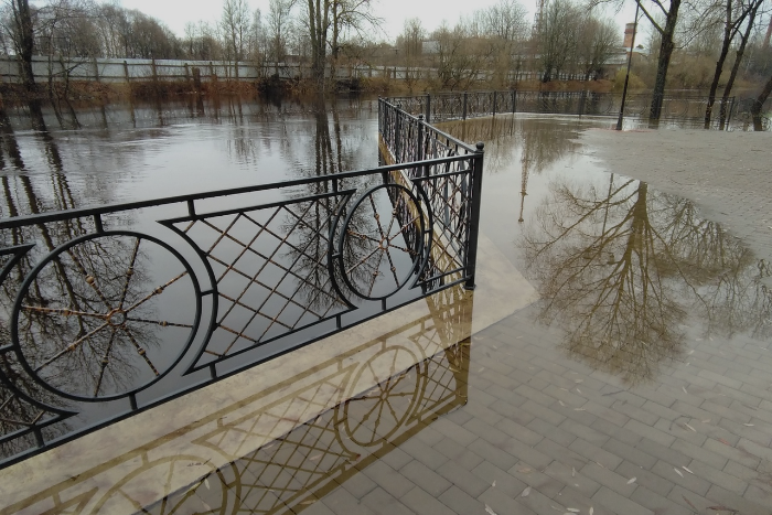 В Луге вышедшая из берегов река затопила недавно реконструированную набережную. Об этом местные жители сообщают в группе «Подслушано в городе Луга» во «ВКонтакте».