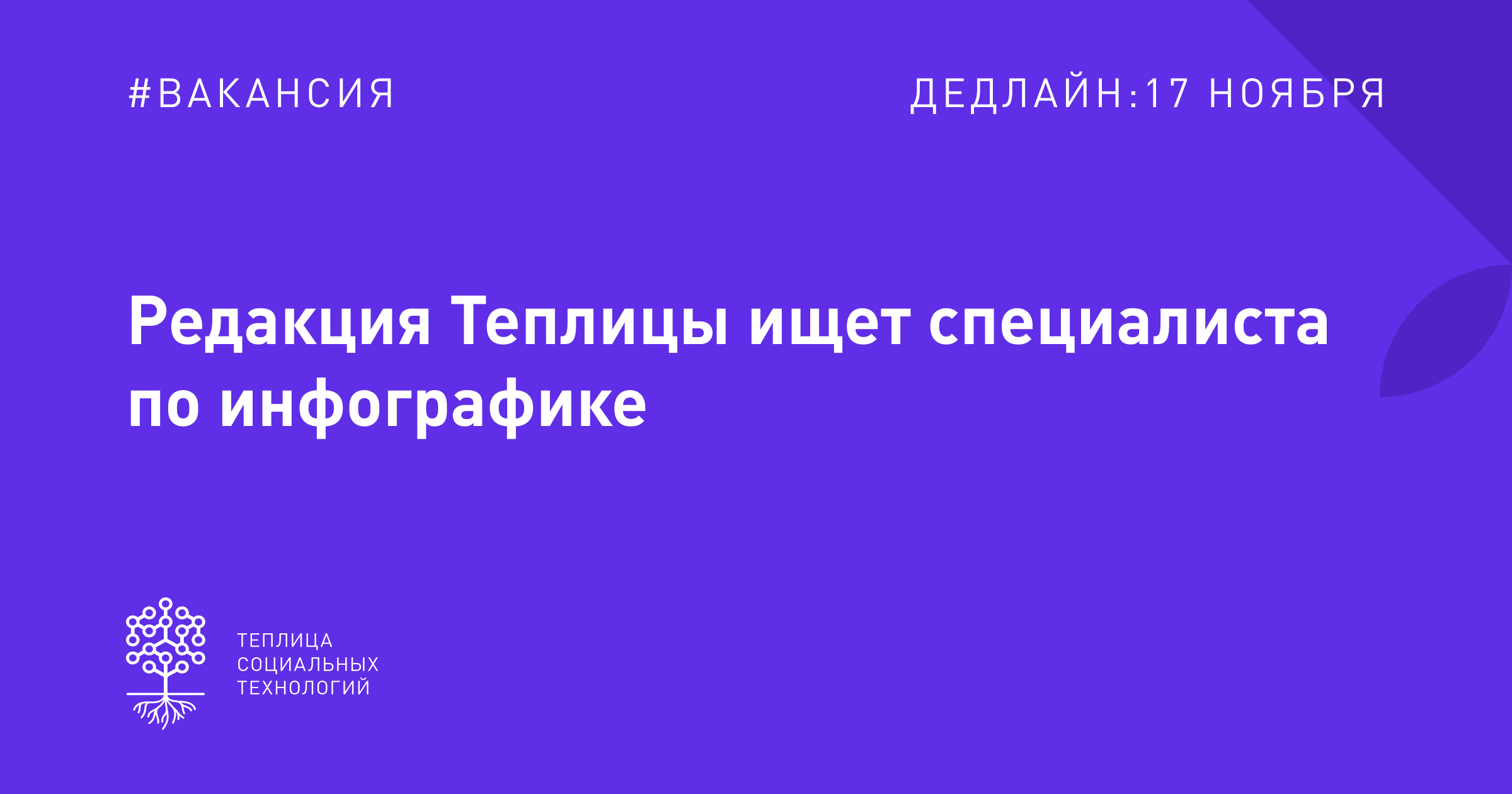 Редакция «Теплицы социальных технологий» ищет специалиста по инфографике. Кандидату необходимо работать с редакционными текстами и создавать несколько инфографик в месяц.
