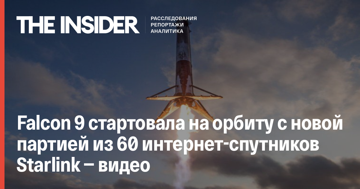 Falcon 9 стартовала на орбиту с новой партией из 60 интернет-спутников Starlink — видео