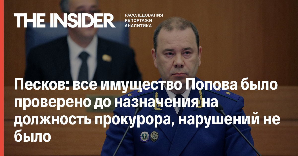 Песков: все имущество Попова было проверено до назначения на должность прокурора, нарушений не было