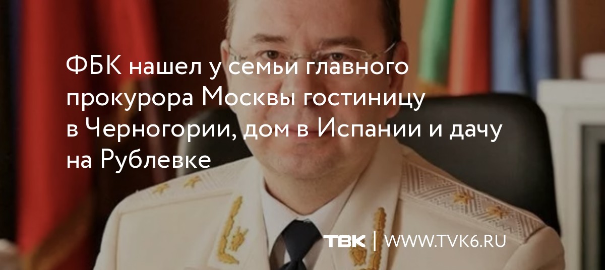 ФБК нашел у семьи главного прокурора Москвы гостиницу в Черногории, дом в Испании и дачу на Рублевке