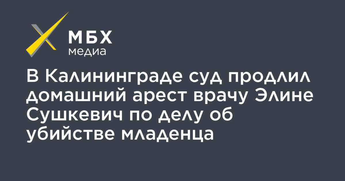 Ленинградский районный суд Калининграда продлил до 14 февраля 2020 года домашний арест врачу реаниматологу-анестезиологу Элине Сушкевич, которую обвиняют в убийстве младенца (пункт «в» части 2 статьи 105 УК). Об этом «МБХ медиа» сообщила ее адвокат Ирина Шевцова.