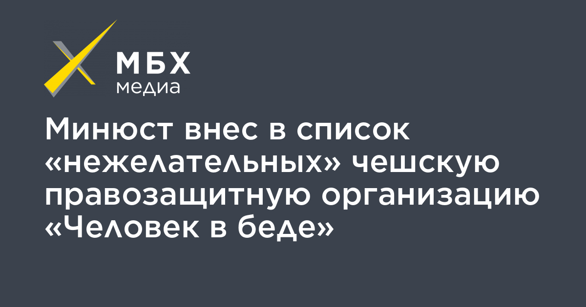 Минюст внес в список «нежелательных» чешскую правозащитную организацию «Человек в беде»
