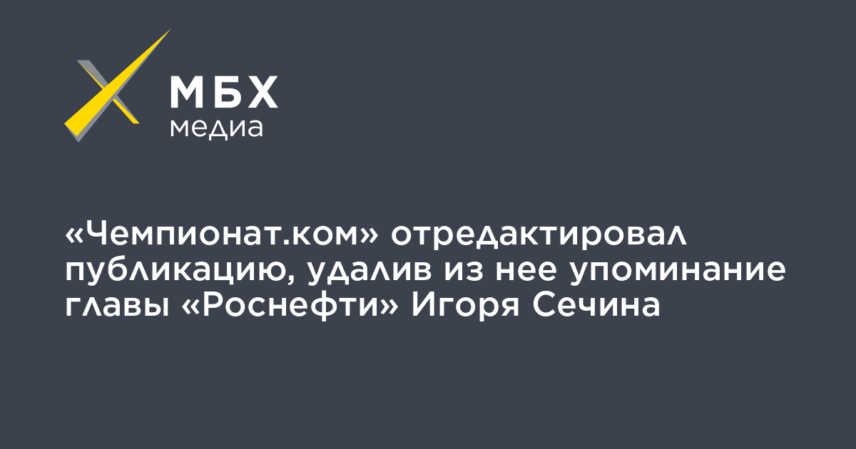 «Чемпионат.ком» отредактировал публикацию, удалив из нее упоминание главы «Роснефти» Игоря Сечина