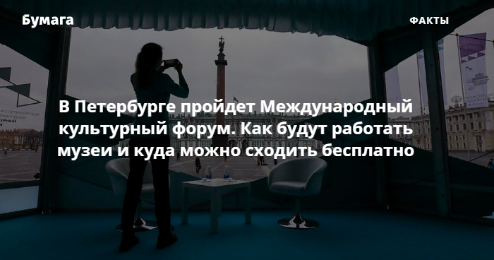 С 14 по 16 ноября в Петербурге пройдет Международный культурный форум. В эти три дня в городе можно будет бесплатно посетить музеи, спектакли и концерты — от выставки Александра Дейнеки до выступления Дениса Мацуева.