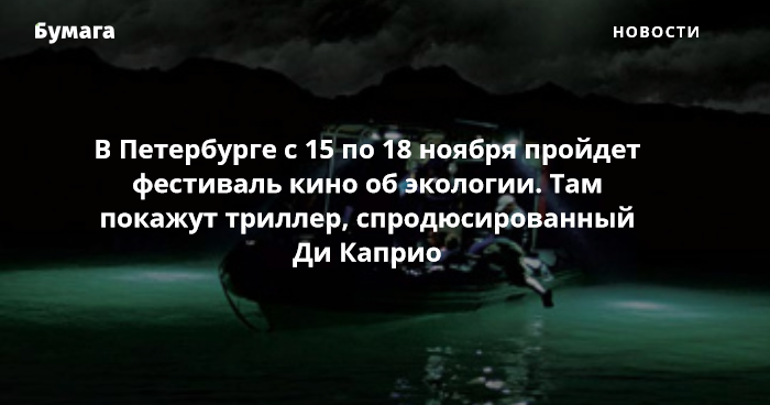 В Петербурге с 15 по 18 ноября в шестой раз пройдет фестиваль экологического кино EcoCup. Показы фильмов пройдут на Новой сцене Александринского театра и в «Авроре».