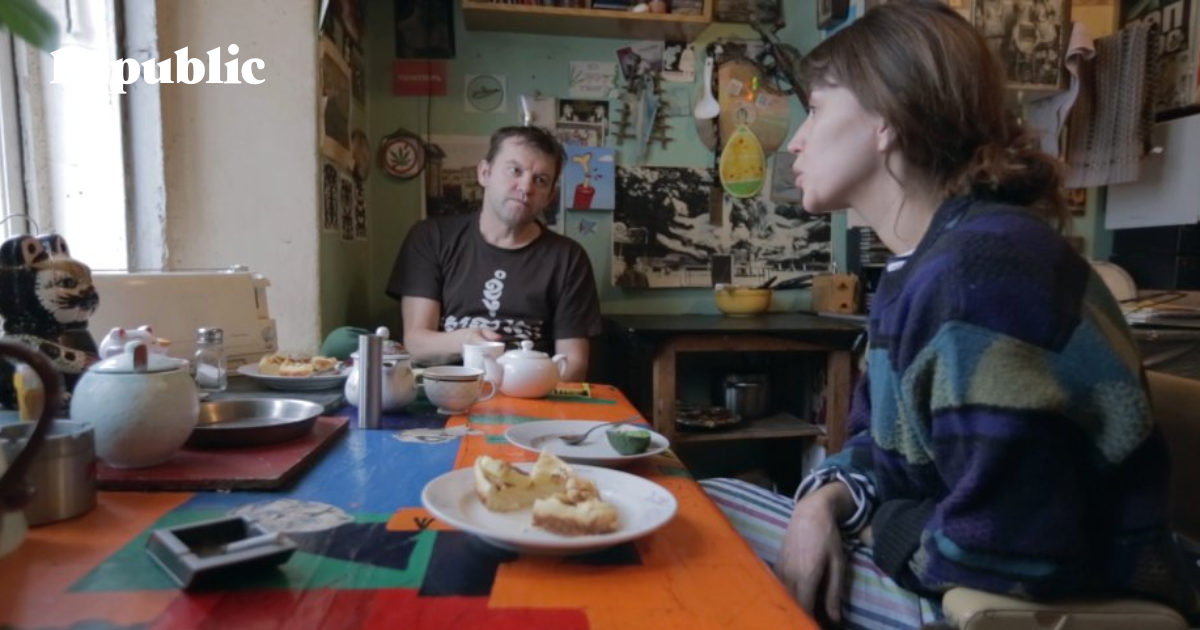 Режиссер Владимир Булныгин снял историю про своего отца, сооснователя арт-группы «Синие носы» Дмитрия Булныгина, не выходя из его большой квартиры на Китай-городе, где он живет со своей подругой-француженкой и другом-звукорежиссером.