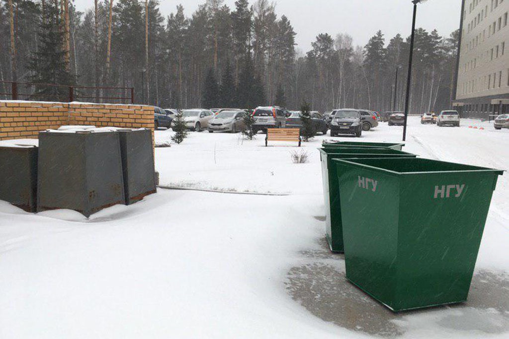 Вокруг мусорки, которая стоит уже несколько лет на территории Новосибирского государственного университета (НГУ), расставили скамейки. Отдыхающие на них будут смотреть на мусорные баки.