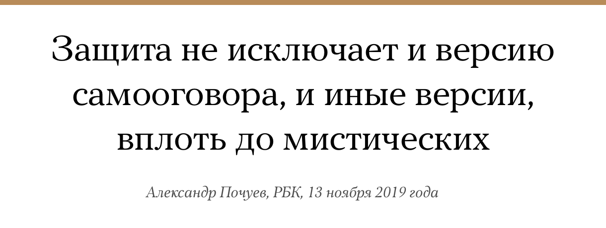 Александр Почуев — адвокат историка Олега Соколова, обвиняемого в убийстве аспирантки СПбГУ Анастасии Ещенко, — считает неправильным, что его подзащитного «публично линчевали» до вынесения приговора. По словам Почуева, сам он не исключает «и версию самооговора, и иные версии [преступления], вплоть до мистических». 63-летнего Олега Соколова 9 ноября достали из реки Мойки вместе с рюкзаком, в котором находились отрубленные женские руки. Дома у историка нашли женскую голову. Соколов признался, что во время ссоры застрелил Анастасию Ещенко (он назвал девушку своей невестой) и расчленил ее тело. Соколова взяли под арест. СПбГУ, где он преподавал, уволил его.