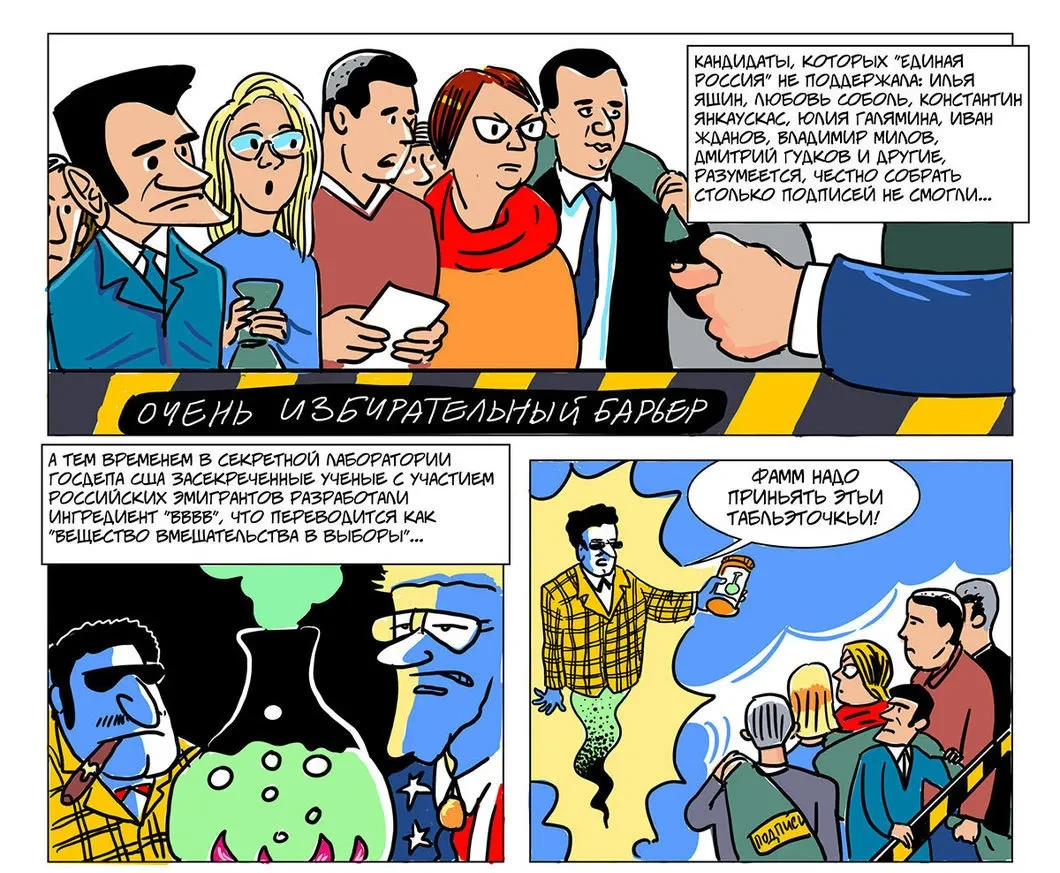 ЦИК и Скрепман побеждают оппозиционную нечисть. Комикс