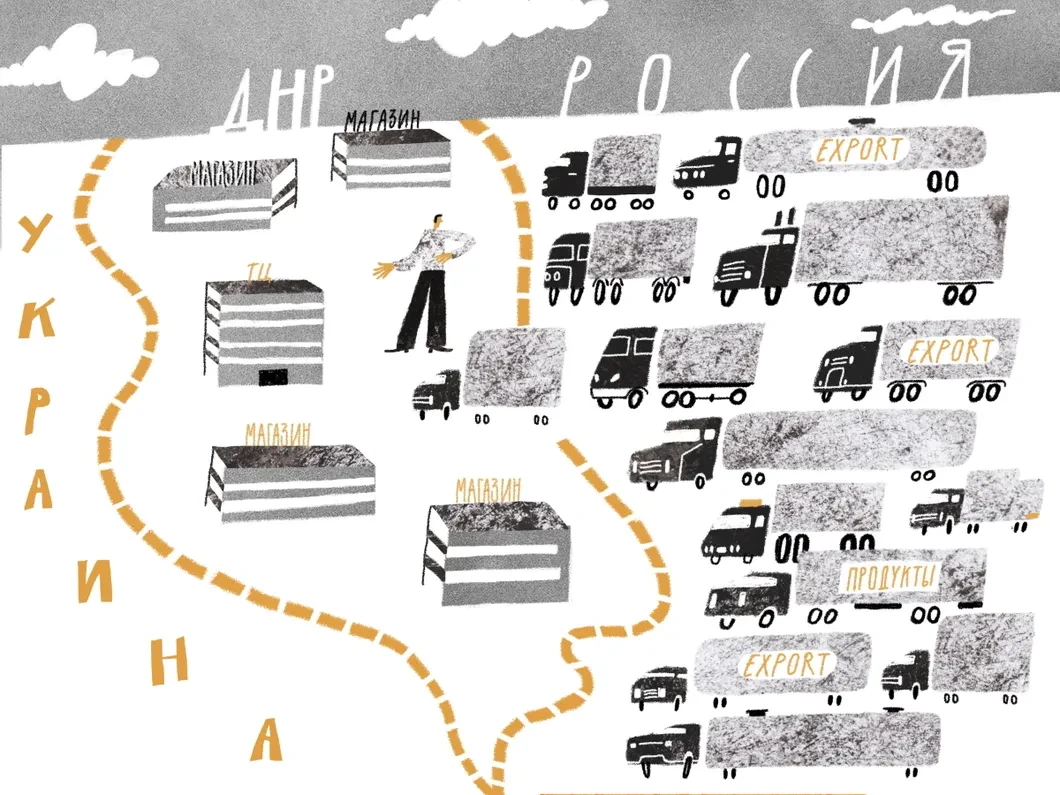 «На этих территориях живут миллионы людей, они все получают рубли из России, ну и кто-то умный все выстроил так, чтобы здесь был неплохой такой рынок сбыта товаров из России — это ж логично?! — рассказывает «Спектру» предприниматель Олег, занятый в ДНР в производственном бизнесе. — Это касается всего: мяса крупного рогатого скота для колбасы, сухого молока для молокозаводов, водочные заводы у нас есть и они мощнейшие, но ни одного спиртзавода на этой территории нет — весь спирт для нашей водки тоже идет из России. У меня приятель пытается свиньями заниматься, небольшую ферму сделал — так стонет, в цены из России на свинину не попадает (цена оказывается неконкурентной — ред.)!