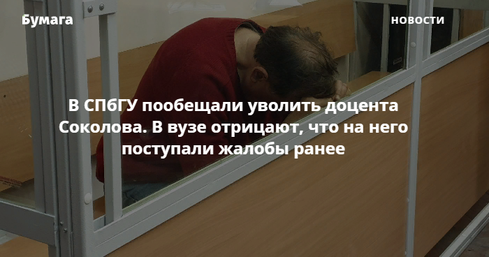 В СПбГУ заявили, что доцент Соколов будет уволен из вуза