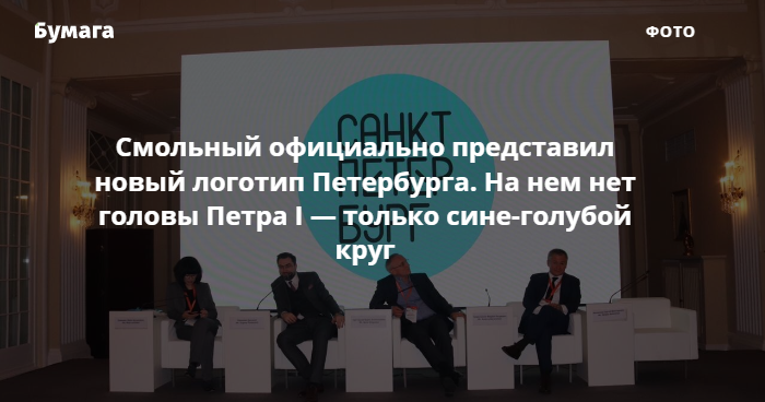 На конференции в честь петербургского Международного культурного форума власти представили новый логотип города. Судя по фотографиям с презентации, метабрендом города стал сине-голубой круг, внутри которого есть слова «Санкт-Петербург» или Saint Petersburg.