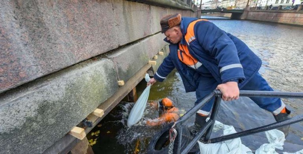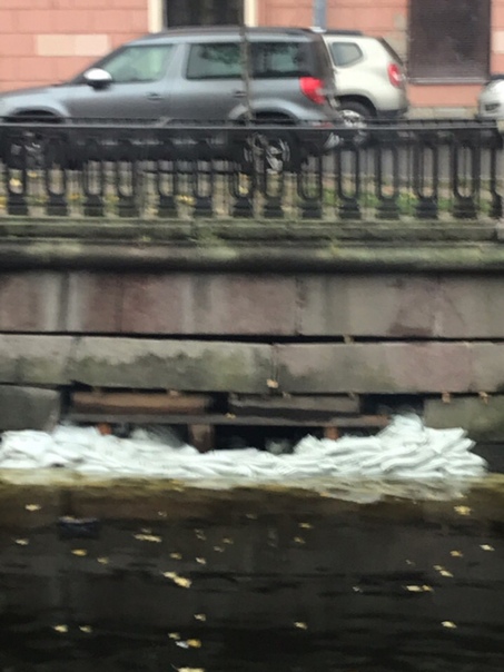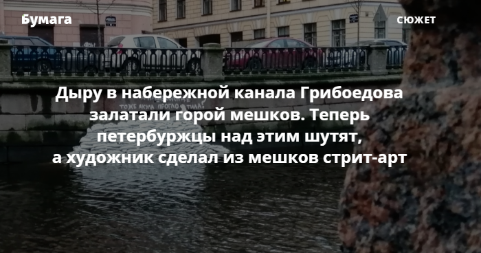 Как дыру в набережной канала Грибоедова залатали горой мешков