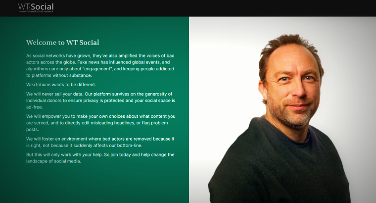 Соучредитель Википедии Джимми Уэйлс объявил о запуске альтернативы Facebook и Twitter, который, как он надеется, будет бороться с вводящими в заблуждение заголовками и публикациями-«наживками». Свой проект он назвал WT:Social — соцсеть без рекламы и «бессмысленного кликбейта». В беседе с Financial Times он охарактеризовал его «безумным экспериментом».
