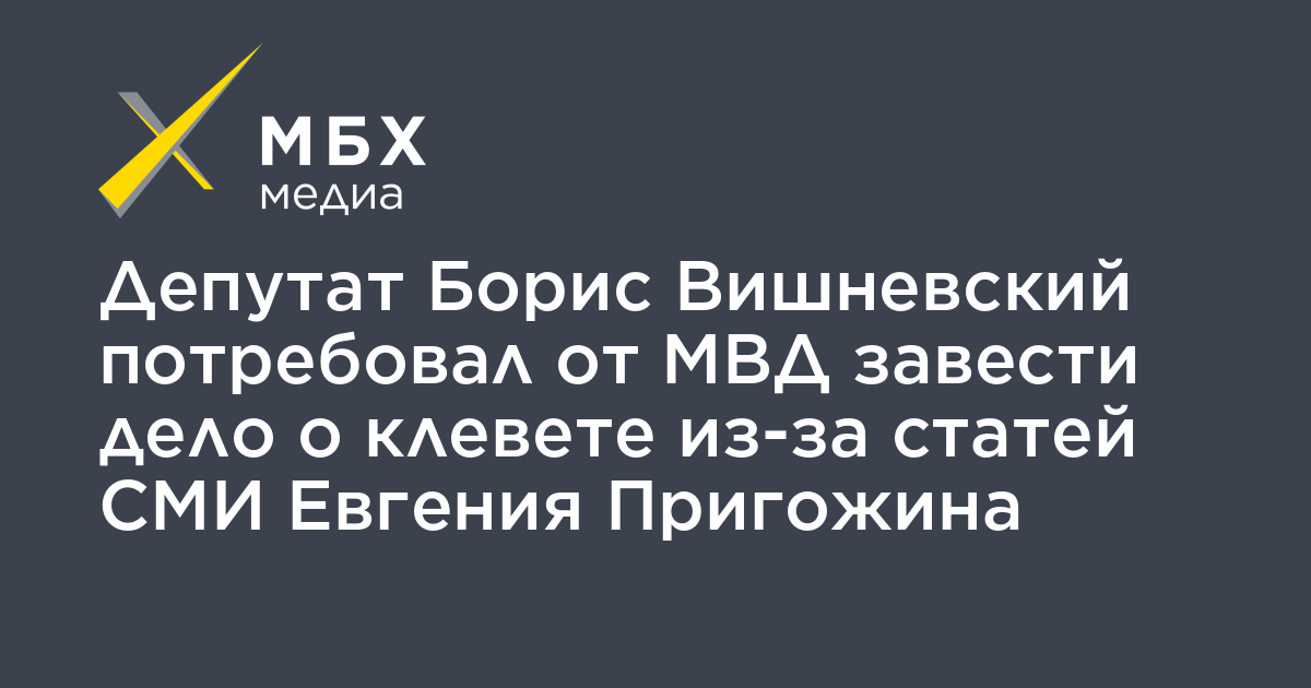 Депутат Борис Вишневский потребовал от МВД завести дело о клевете из-за статей СМИ Евгения Пригожина