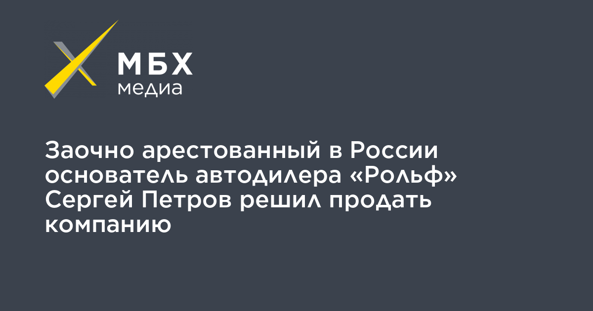 Основателя автодилера «Рольф» Сергей Петров, объявленный в международный розыск и заочно арестованный в России за вывод за границу 4 млрд рублей, решил продать компанию, об этом пишут «Ведомости».
