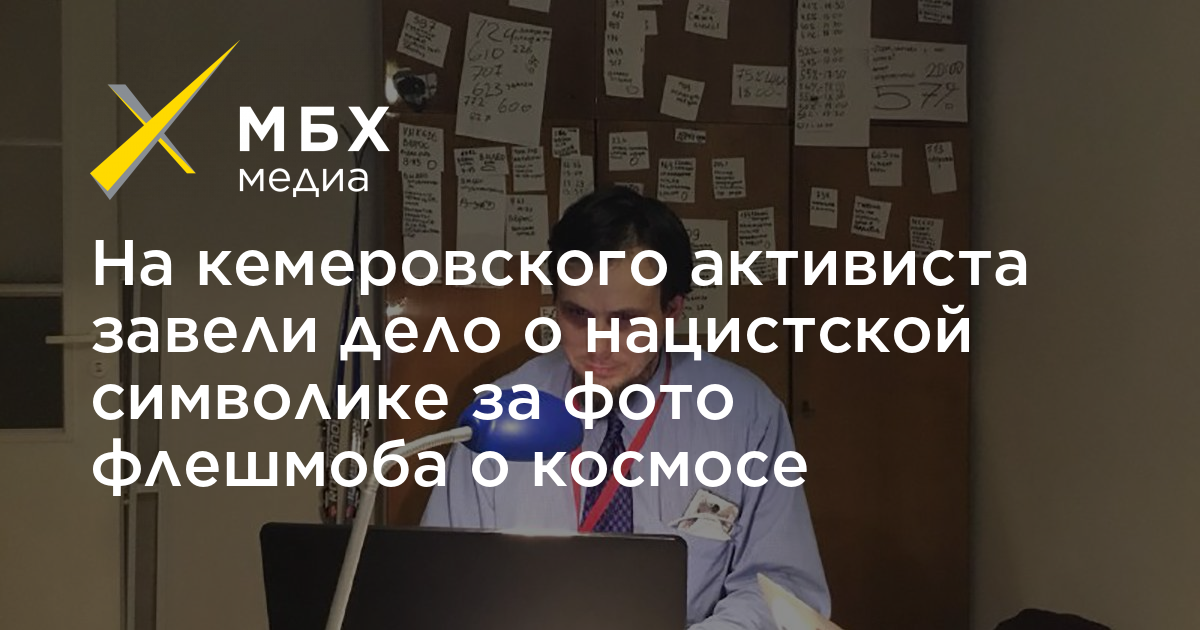 На активиста из Кемеровской области Дмитрия Миропольцева завели административное дело о демонстрации нацистской символики (часть 1 статьи 20.3 КоАП) за пост во «ВКонтакте» о флешмобе в честь 55-летия со дня первого полета человека в космос. Об этом Миропольцев сообщил «МБХ медиа».