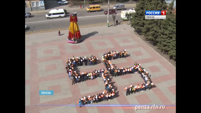 Речь идет о скриншоте с видео, где участники флэшмоба «Покорение космоса» в Пензе, который прошел в 2016 году, выстроились в форме числа «55». Миропольцев опубликовал скриншот из сюжета федерального канала у себя на странице во «ВКонтакте».