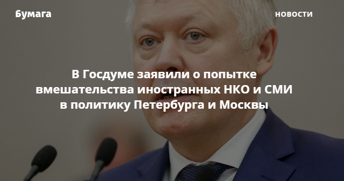 Комиссия Госдумы по расследованию иностранного вмешательства во внутренние дела России обнаружила попытки вмешательства иностранных некоммерческих организаций (НКО) и СМИ в политику 19 субъектов России, включая Петербург и Москву. Об этом заявил глава комиссии Василий Пискарев.