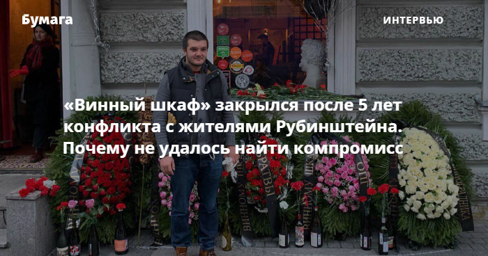 На улице Рубинштейна 9 ноября закрылся «Винный шкаф» — культовый бар, работавший пять лет. Все эти годы с заведением конфликтовали местные жители. В баре утверждают, что закрывались вовремя и работали по закону, но жалобы соседей дошли до Роспотребнадзора, требования которого оказались невыполнимыми. Уход «Винного шкафа» жители называют победой — и это уже не первое заведение, закрывшееся в этом году на Рубинштейна после жалоб горожан.