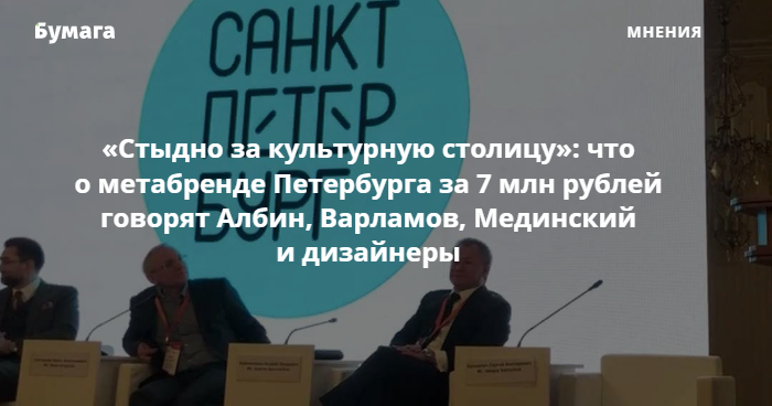 В соцсетях многие раскритиковали метабренд и его стоимость — на разработку выделили 7 миллионов рублей. Пользователи сравнивают его с логотипом, разработанным студией Артемия Лебедева за 1 рубль, и создают мемы с сине-голубым кругом. «Бумага» собрала мнения Ильи Варламова, Игоря Албина, Владимира Мединского, а также дизайнеров и известных петербуржцев о новом метабренде.