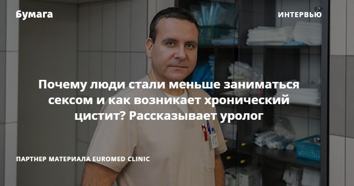 Почему современные люди меньше занимаются сексом, как работа в офисе и курение влияют на мужское здоровье и что важно знать при лечении цистита? «Бумага» поговорила с урологом Euromed Clinic Григорием Ткаченко о распространенных современных заболеваниях, мифах об инфекциях в общественных туалетах и антибиотиках.