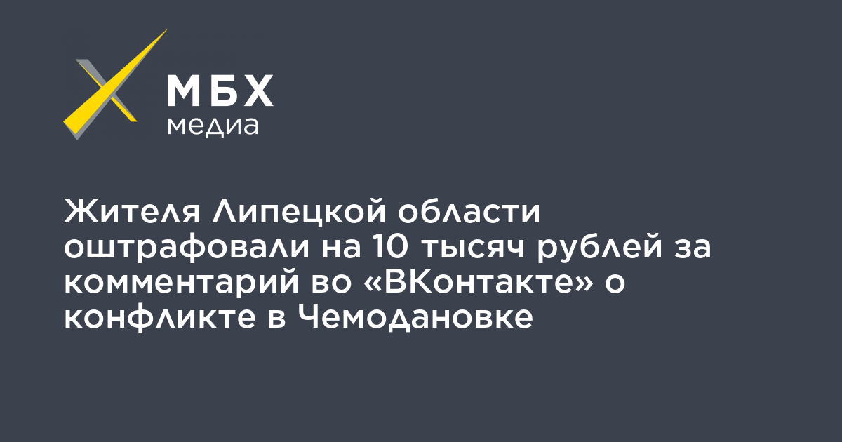 Жителя Липецкой области оштрафовали на 10 тысяч рублей за комментарий во «ВКонтакте» о конфликте в Чемодановке