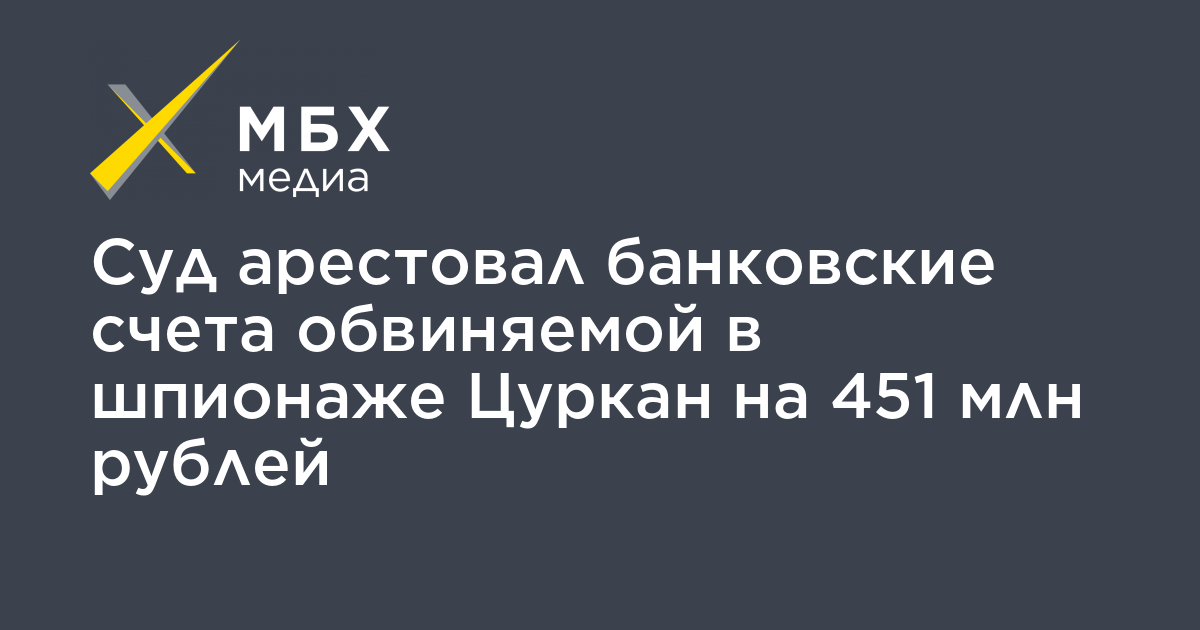 Ранее Лефортовский суд наложил обеспечительный арест на три банковских счета Цуркан, где находятся более 500 млн рублей. Таким образом в рамках уголовного дела о шпионаже в отношении Цуркан арестовано около 1 млрд рублей.