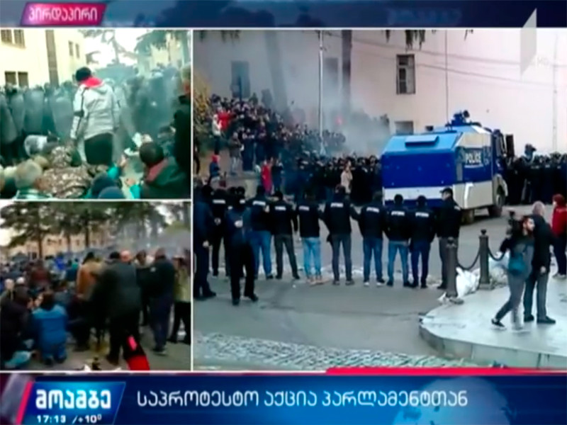 Акцию у грузинского парламента разогнали водометами, но протестующие вернулись