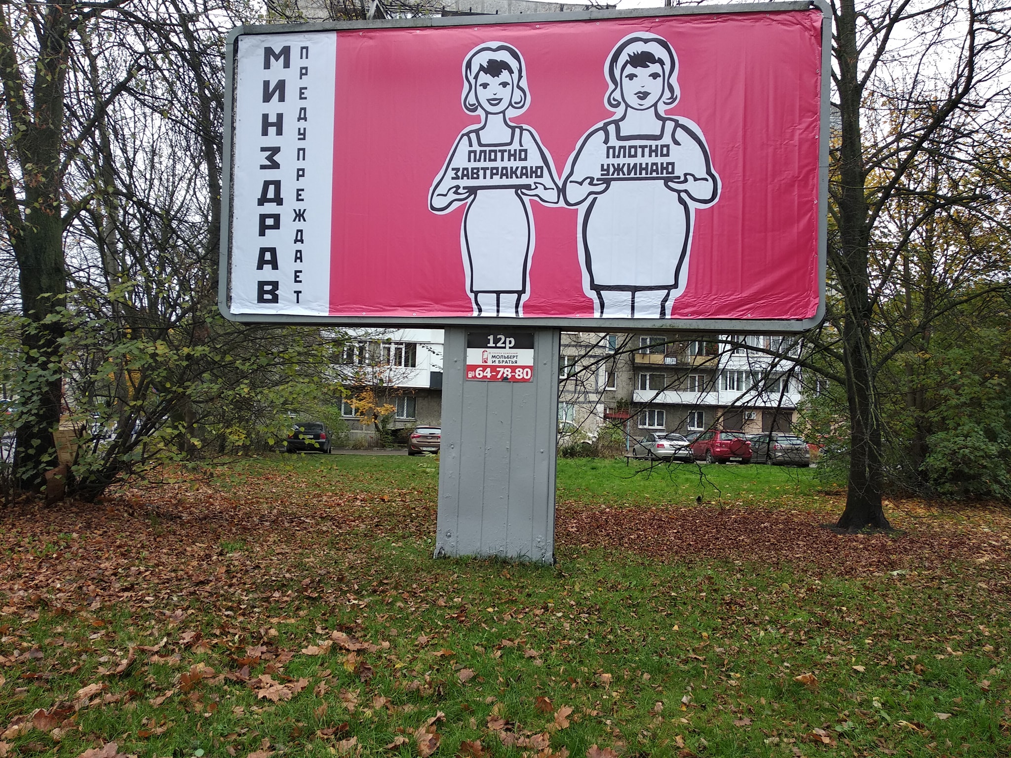 "Толстеть – значит, стареть" – такие билборды с социальной рекламой появились на улицах Калининграда 1 ноября. Так региональный Минздрав решил привлечь внимание калининградцев к теме здорового образа жизни. На совет "поменьше кушать" бюджет потратил 3,2 млн рублей.