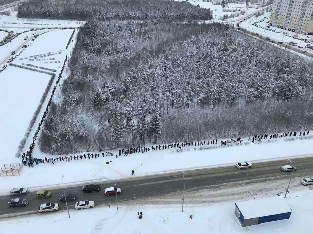 На мирный протест в районе Грибоедовской развязки вышли жители 38, 39, 40 и 41 микрорайонов Сургута: взявшись за руки, они окружили лес, который власти города планируют вырубить для возведения автовокзала. Горожане считают, что проект не только уничтожит лес, но и приведет к транспортному коллапсу.