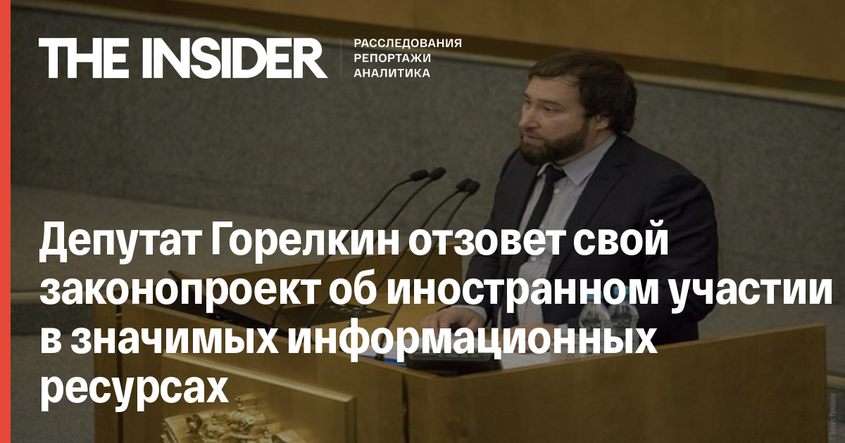 Депутат Горелкин отзовет свой законопроект об иностранном участии в значимых информационных ресурсах