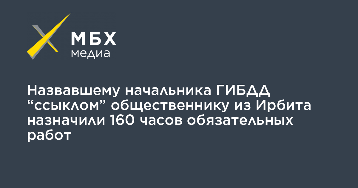 Судебный участок №1 города Ирбита Свердловской области назначил 160 часов обязательных работ местному общественнику Алексею Кононову за то, что тот назвал «ссыклом» начальника местной ГИБДД Дениса Митряшова в своем видеоблоге на YouTube. Об этом корреспонденту «Урал. МБХ медиа» сообщил сам Кононов.