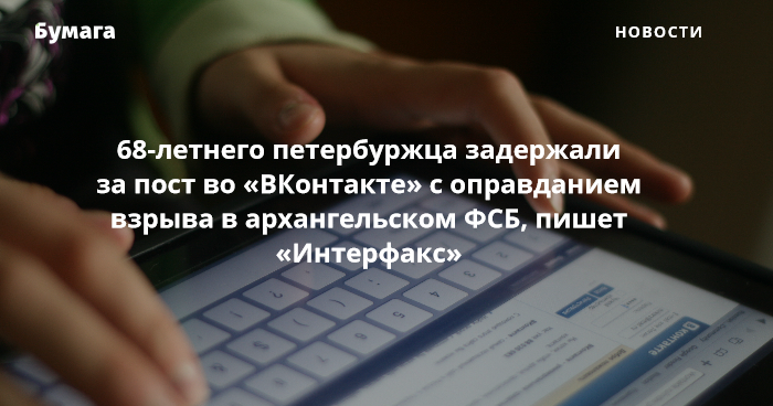 В Петербурге сотрудники центра «Э» задержали 68-летнего пенсионера из-за поста во «ВКонтакте», в котором тот оправдывал терроризм. Об этом сообщает «Интерфакс» со ссылкой на источник, ознакомившийся с делом.
