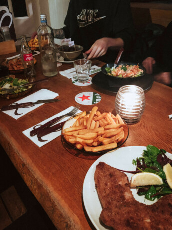 - большой набор для двоих (на фото+картошечка) — 45,60 евро (3200 рублей). Надо быть очень голодным, чтобы съесть это вдвоём.
