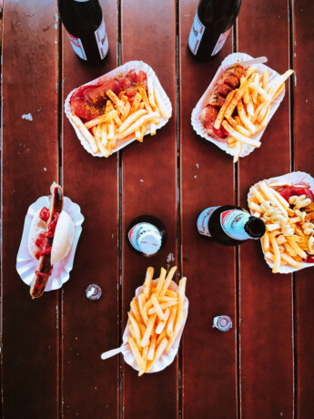 Из фастфуда стоит попробовать Currywurst — это обжаренная сарделька, порезанная на кусочки (можно заказать и не порезанную) и обильная политая специальным кетчупом карри. Мы ели в Curry at the Wall. Набор из карривурста, картошки и напитка стоит 8 евро (570 рублей).