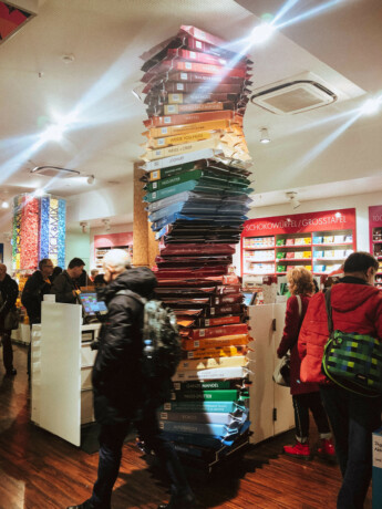 Дальше можно идти по прямой в сторону Бранденбургских ворот, свернуть на параллельную улицу и заглянуть в музей-магазин Ritter Sport. Здесь можно найти необычные вкусы, почитать, из чего делают шоколад, набрать сувениров и даже сделать свой Ritter Sport за 4 евро (300 рублей).