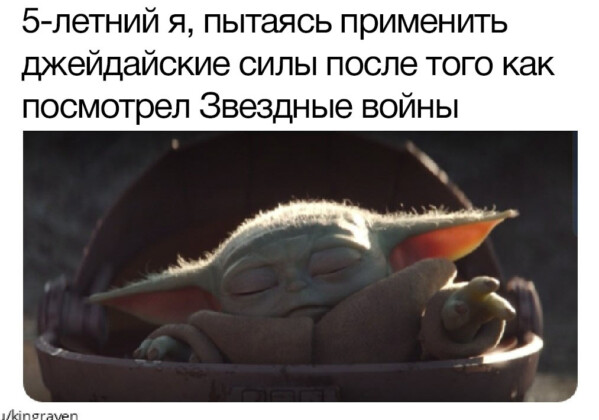 В соцсетях набрали популярность мемы с персонажем из сериала «Мандалорец», который напоминает Йоду в младенчестве. Пользователи умиляются герою, перекладывают образ на разнообразные мемы и шутят о том, как ребёнка игнорируют родители.