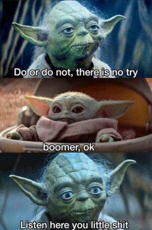 Хватило и других шуток — изображения персонажа перекладывали на другие мемы, вспоминали старые шаблоны и даже вложили в уста малыша фразу «Окей, бумер».